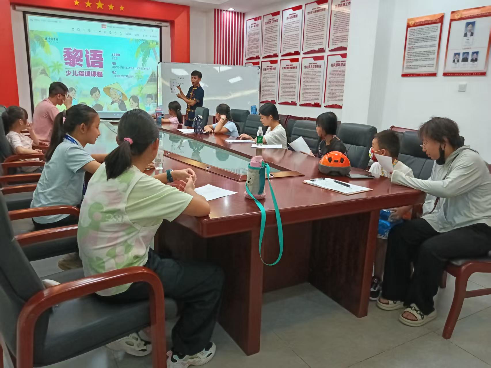 为守护海南本土文化基因,助力黎族语言活态传承,7月18日下午,由三亚市图书馆精心策划主办的“黎语少儿培训班”在馆内二楼会议室正式拉开帷幕。